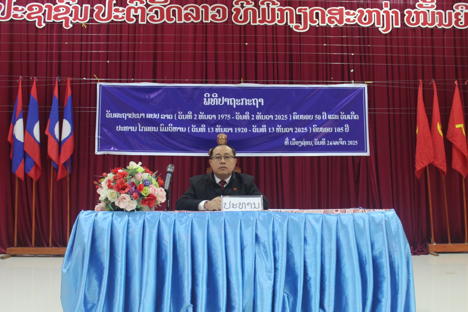 ວັນທີ 25-27 ພະຈິກ 2025 ທີ່ຜ່ານມານີ້ ຄະນະໂຄສະນາອົບຮົມແຂວງໄດ້ຈັດ ພິທີປາຖະກະຖາ ວັນສະຖາປະນາ ສປປ ລາວ ຄົບຮອບ 50 ປີ ແລະ ວັນເກີດປະທານ ໄກສອນ ພົມວິຫານ ຄົບຮອບ 105 ປີ ຢູ່ 3 ເມືອງຂອງແຂວງຫົວພັນຄື: ເມືອງຫົວເມືອງ, ເມືອງຮ້ຽມ ແລະ ເມືອງຊ່ອນ , ໂດຍການເປັນປະທານ ແລະ ໃຫ້ກຽດປາຖະກະຖາ ຂອງ ທ່ານ ອານົງລັກ ແສງສຸລິຍາ ຄະນະປະຈຳພັກແຂວງ ປະທານກວດກາພັກ-ລັດແຂວງ, ໂດຍໃຫ້ການຕ້ອນຮັບຂອງທ່ານ ເລຂາພັກເມືອງ, ມີພາກສ່ວນທີ່ກ່ຽວຂ້ອງຂັ້ນແຂວງ, ບັນດາທ່ານການນໍາເມືອງ, ອະດີດການນໍາຂອງເມືອງ, ພະນັກງານລັດຖະກອນຈາກບັນດາຫ້ອງການ ແລະ ພໍ່ແມ່ປະຊາຊົນບັນດາເຜົ່າອ້ອມຂ້າງເມືອງເຂົ້າຮ່ວມ.
